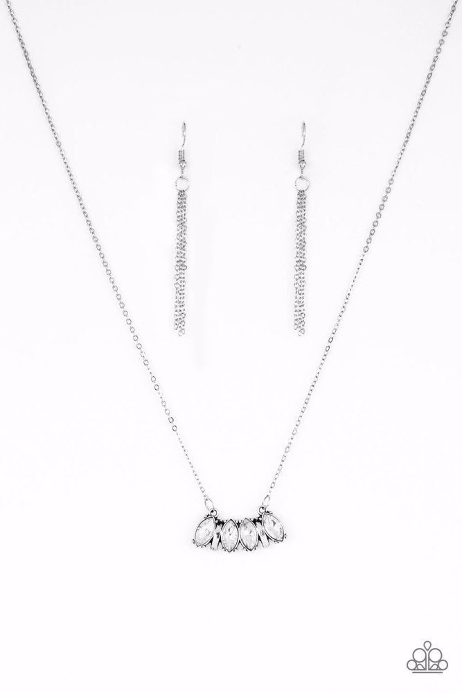 Featuring elegant marquise style cuts, white rhinestones join with silver accents below the collar, creating a dainty pendant. Features an adjustable clasp closure.