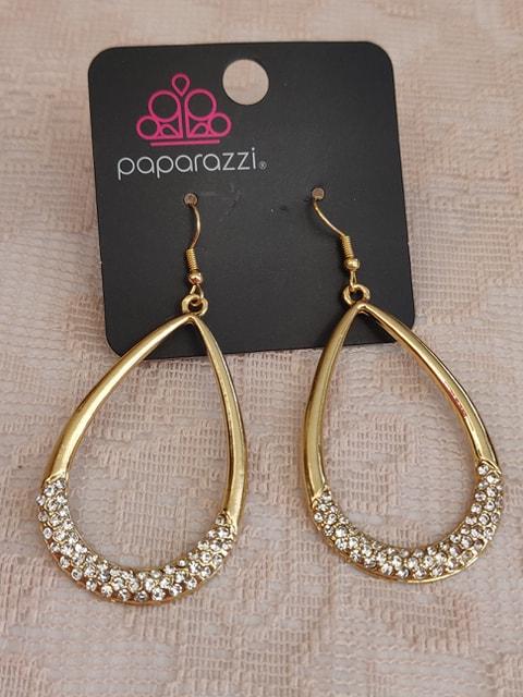 As if dipped in glitter, the bottom of a shimmery gold lure is encrusted in white rhinestones for a refined finish. Earring attaches to a standard fishhook fitting.